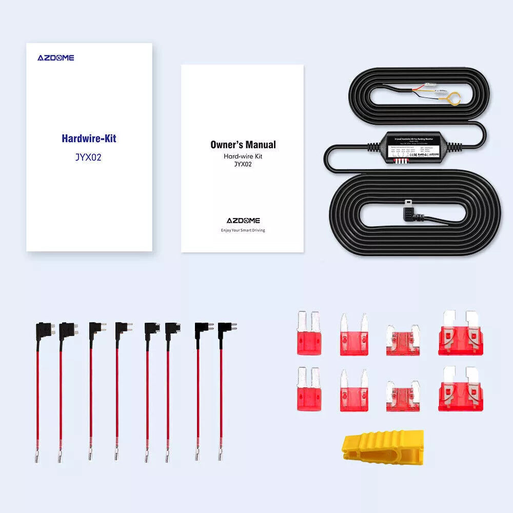 The AZDOME JYX02 Mini USB HardWire Kit delivers reliable continuous power to your dash cam, eliminating the need for manual charging. Compatible with AZDOME models M550, PG02S, GS63H, and PG16S, this hardwire kit seamlessly integrates with your vehicle's electrical system. Operating across 12-24V input with a stable 5V/3A output, it ensures consistent performance in any driving condition. The compact design maintains a clean installation while providing uninterrupted dash cam operation, perfect for capturing every journey with dependable power management.